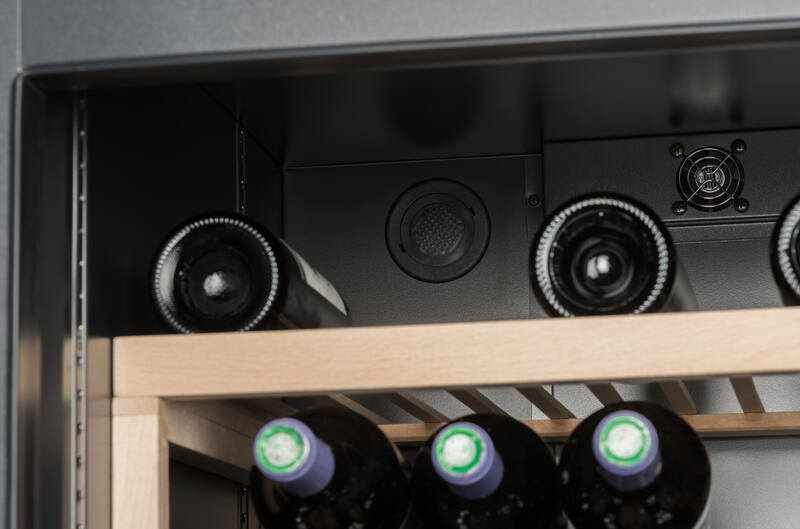 Its anti-frost system prevents ice formation in case of a drop in ambient temperature, while its secure compressor protects your wines from extreme temperatures.