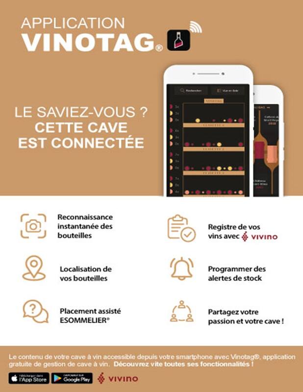 Thanks to the Vinotag® app, the VIP330VLIMITED allows for digital management of your cellar. Compatible with Vivino, it provides precise tracking of your collection and alerts you to optimal tasting periods.