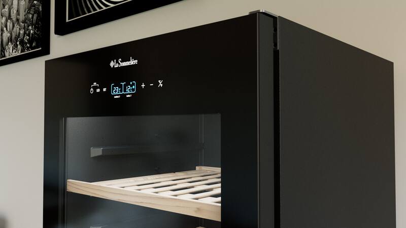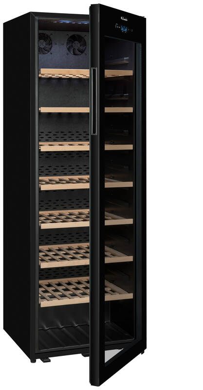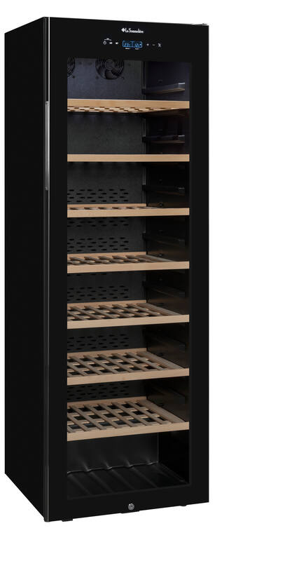 The cabinet is supplied with 7 removable wooden shelves, allowing you to organise your bottles according to your needs. They are designed to hold 75 cl Bordeaux bottles. The integrated lock and digital control panel ensure security and easy management of your collection.